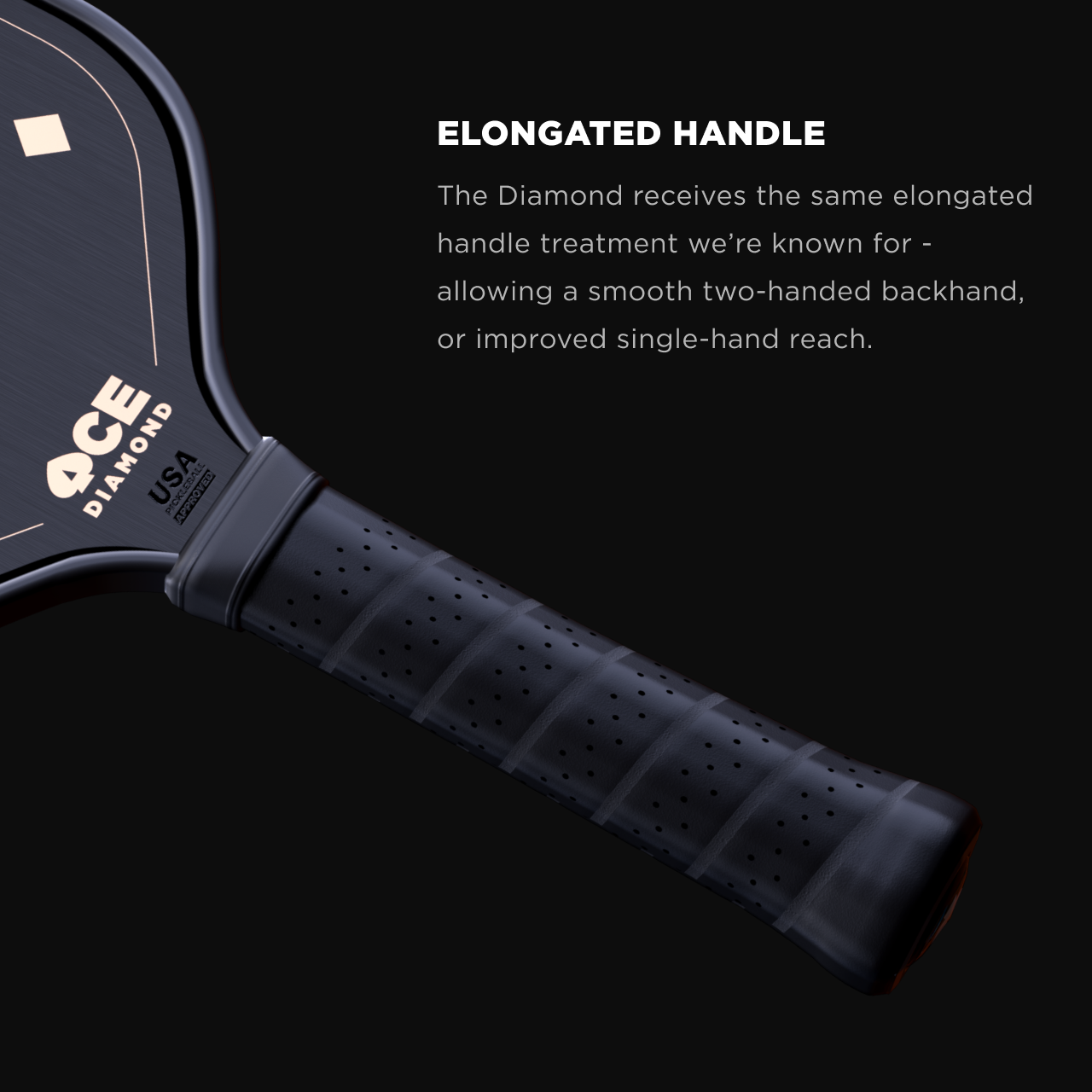 The ACE Diamond is a USAP approved paddle and optimal choice for intermediate to advanced players looking for extra power on their shots without sacrificing hand speed do to the additional weight of many power paddles. The Diamond's aramid core delivers all of the power with none of the extra weight and is the paddle of choice by Gabe Joseph who is ranked top 10 in the world.Share