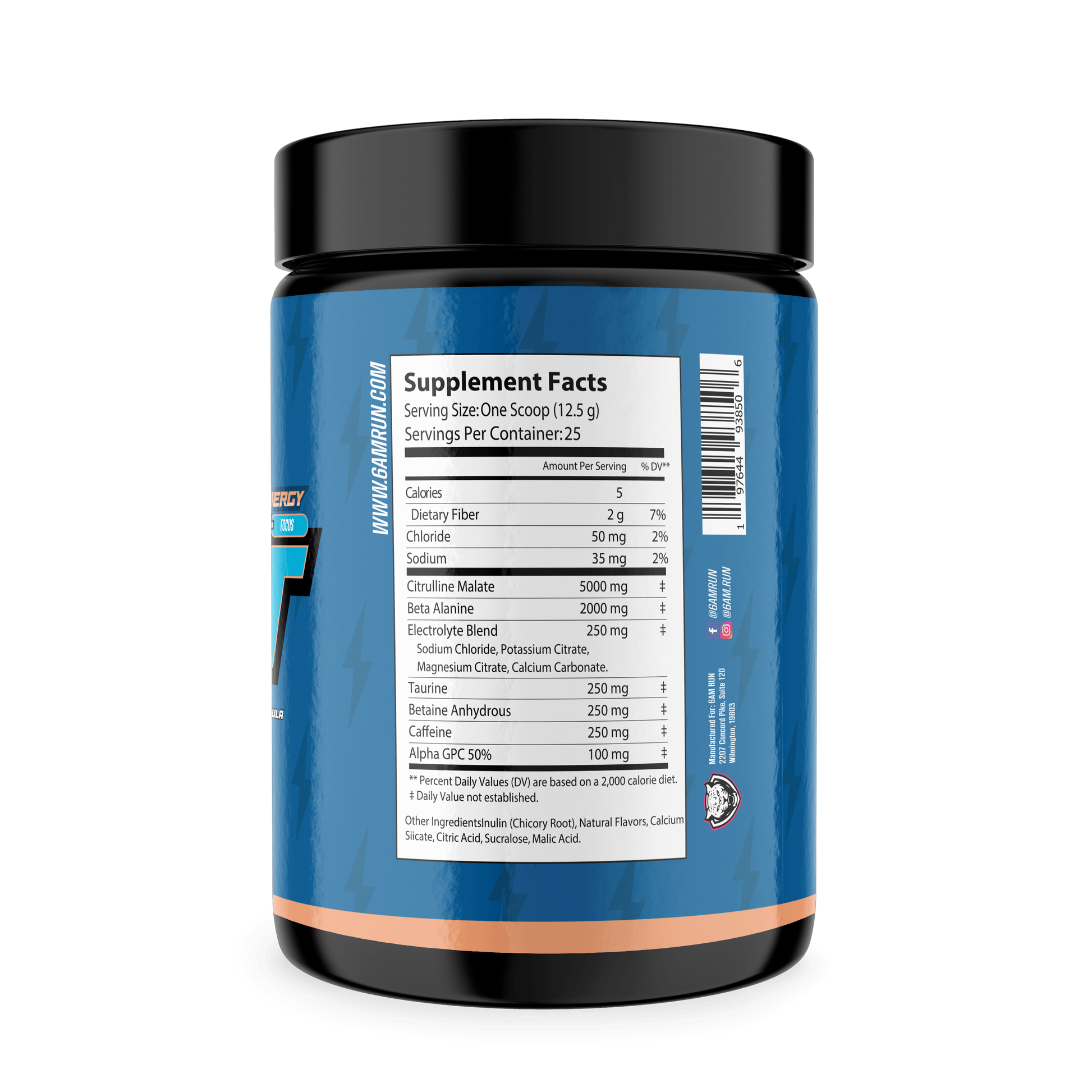 The 6am Run BOLT Pre-Run/Workout is here to help you get more out of your runs and training. It has an electrolyte blend for hydration, beta alanine for endurance enhancement and a boost of muscular strength with 5000 mg of Citrulline Malate.