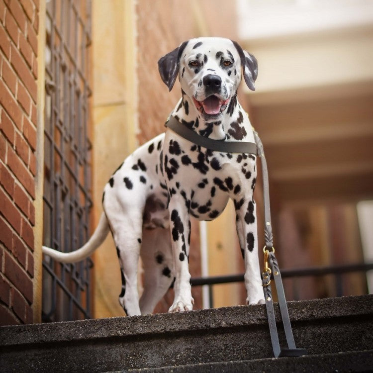 Keep your dog close with wrap-around comfort. This adjustable harness is handmade in Austria with buttery soft, naturally tanned German leather that won’t rub or itch. The Timeless Grey Harness has a balanced, unrestricted fit with plenty of legroom. Solid brass or steel rivets connect three soft leather loops, and the easy-to-find leash clip is centered on top.