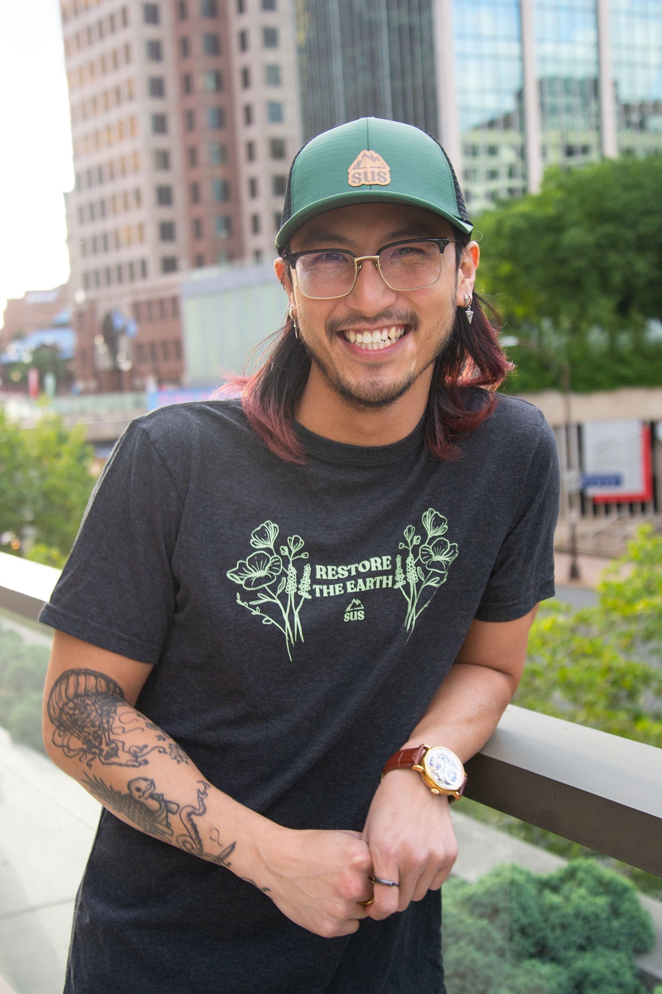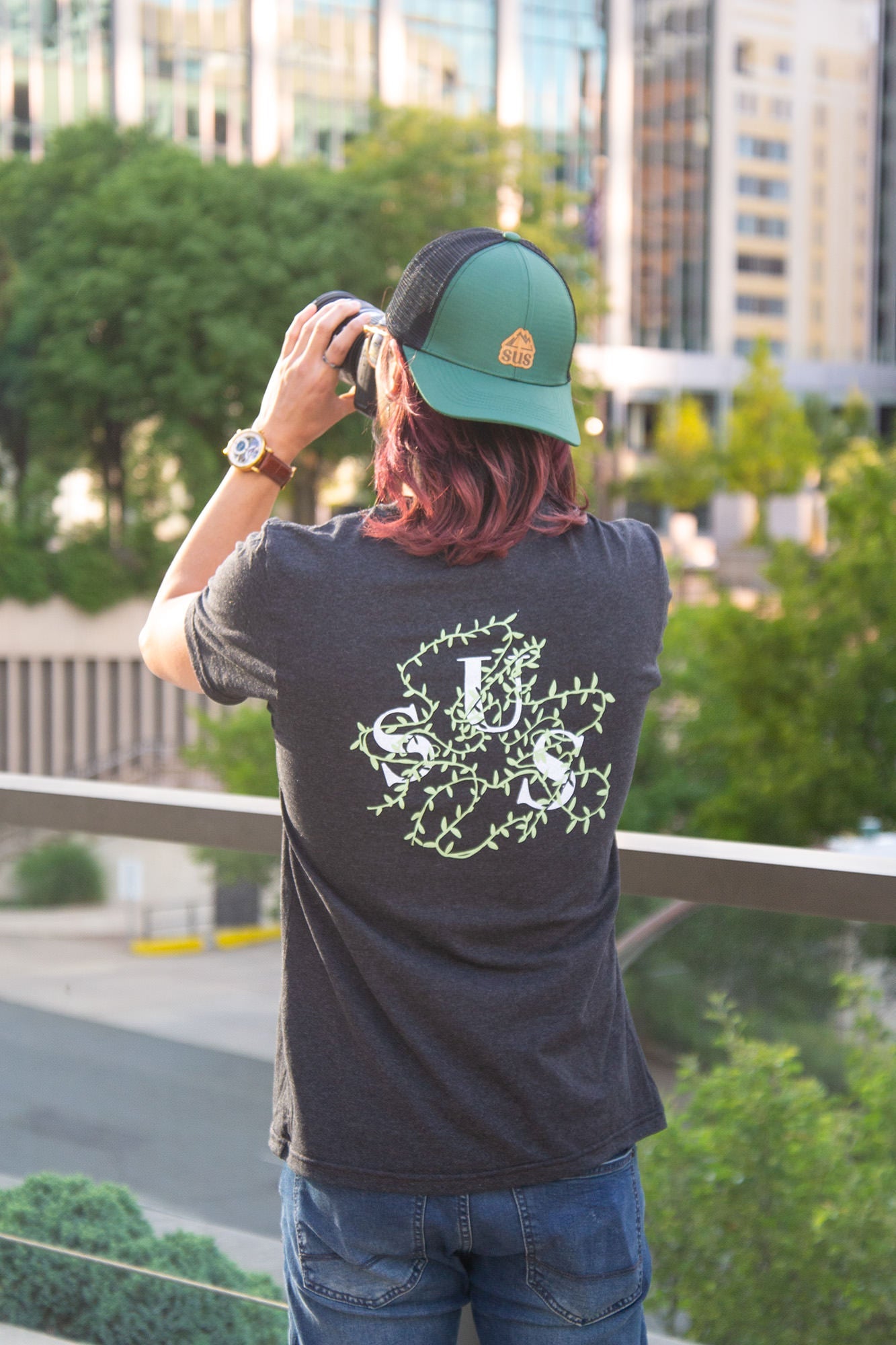 The frequently asked for trucker hat is here! Our deep forest colored hat symbolizes the beautiful hue of woods in the wild. Each hat purchased removes 3 plastic bottles from going into landfills.