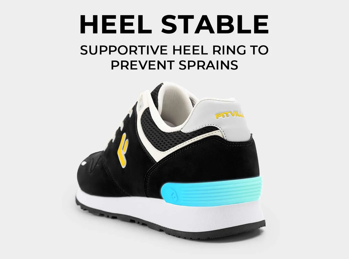 Jump back to the 80s with FitVille ArchPower Classic Sneakers. Sleek retro design along with FitVille’s sole cushioning technology. Featuring a suede and mesh upper for excellent breathability and an EVA midsole for durable support. The rubber outsole offers traction along with a TPU heel ring to stabilize your stride on any given surface. Add this classic, stylish and versatile sneaker to your collection today.