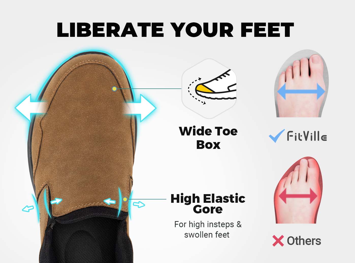 Wide Toe Box and High Arch Design.