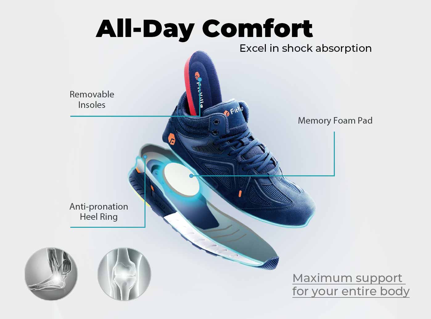 Aside from the benefits of protecting your ankles, the High-top version of Rebound Core creates an iconic basketball look while the FitVille Patented PropelCore™ sole provides superior cushioning and optimal comfort for every step of your day.