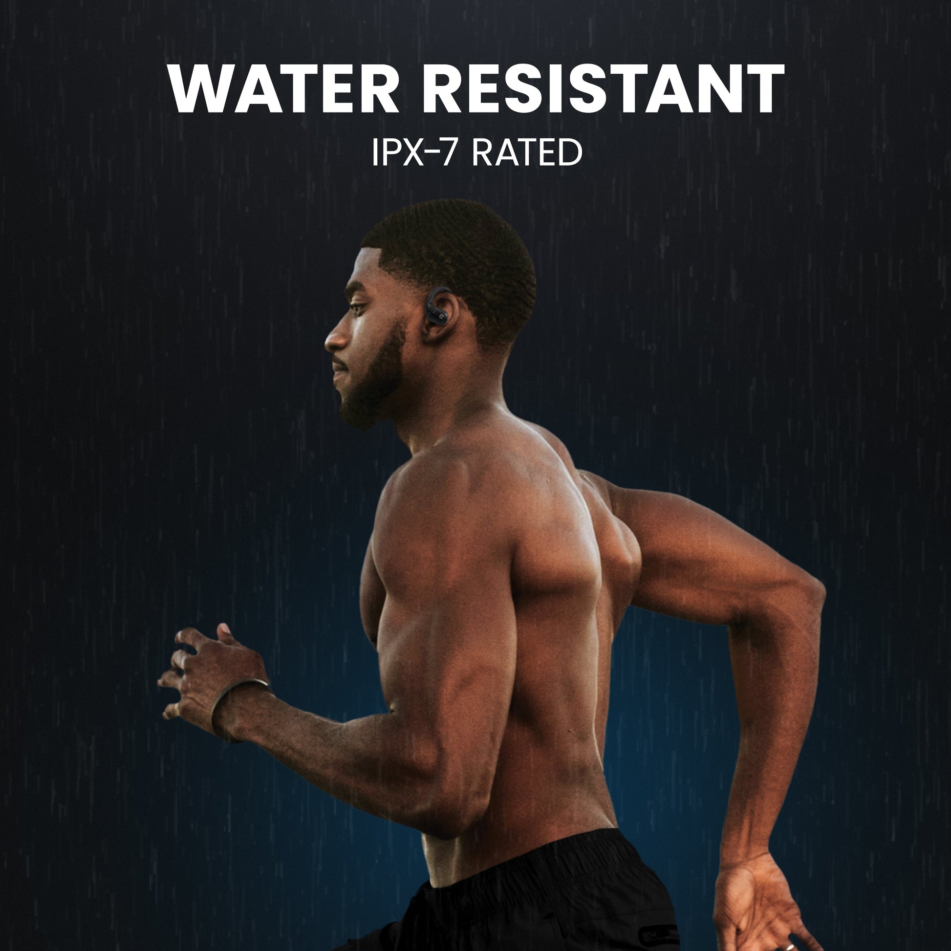 - Waterproof: Power through rain, sweat, and even showers. The earbuds use internal nano-coating to create IPX7 waterproofing.